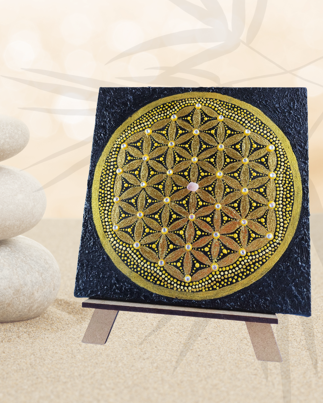 No centro da FLOR DA VIDA tem uma pequenina AMESTISTA.